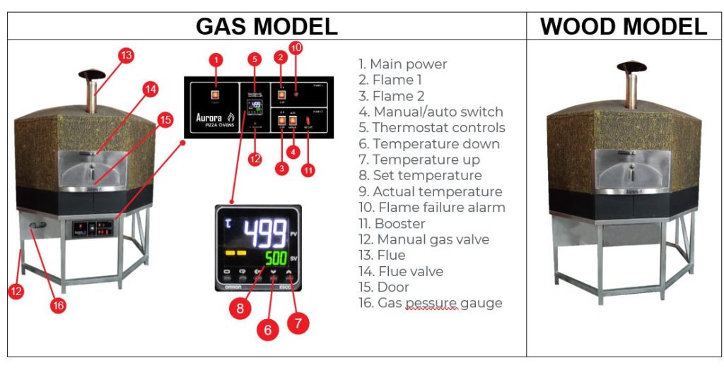· Pizzas capacity Wood fired version: 6 large size (32cm), 7 regular size (28cm), 9 small size (24 cm).